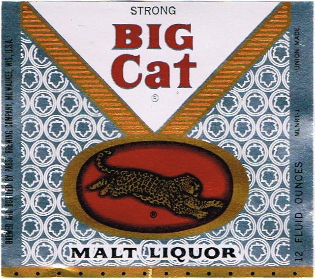 BIG CAT MALT LIQUOR Can - Pabst Brewing Co. 5 Cities - eCRATER Big Cat MALT LIQUOR PABST BREWING COMPANY, MILWAUKEE, WIS., PEORIA HEIGHTS, ILL., NEWARK, J.J., LOS ANGELES, CAL., PABST, GA. This 12 oz., 3 piece crimped steel, pull tab can is top opened. Condition...the can is straight and the colors are bright but there is some rust forming on the bottom lid. Click the image to enlarge.